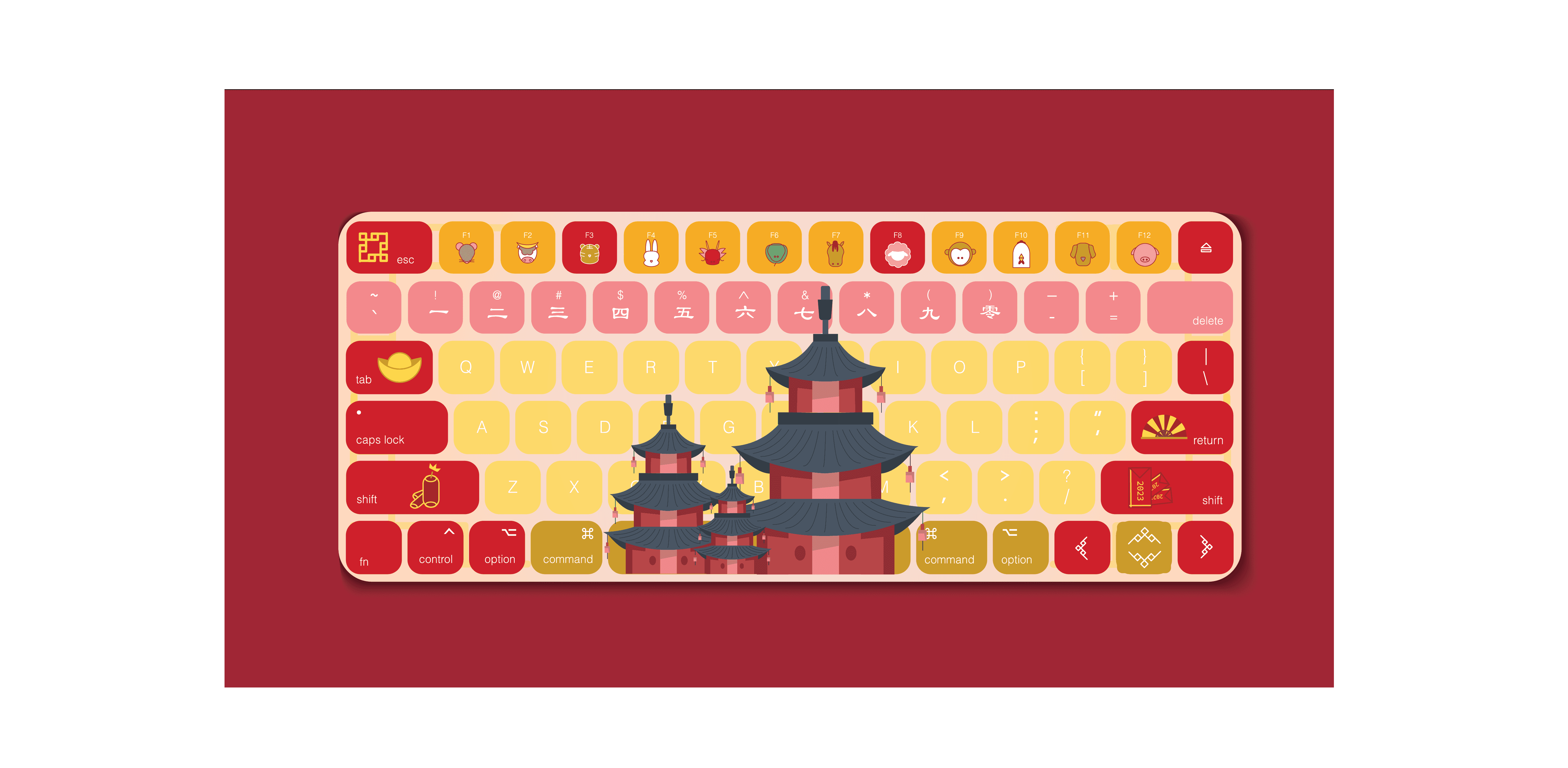 For this keyboard design, I initially explored bright colours to evoke different moods, but they didn’t capture the essence of Chinese New Year. Therefore, I decided to use traditional Chinese New Year colours to better reflect the theme.