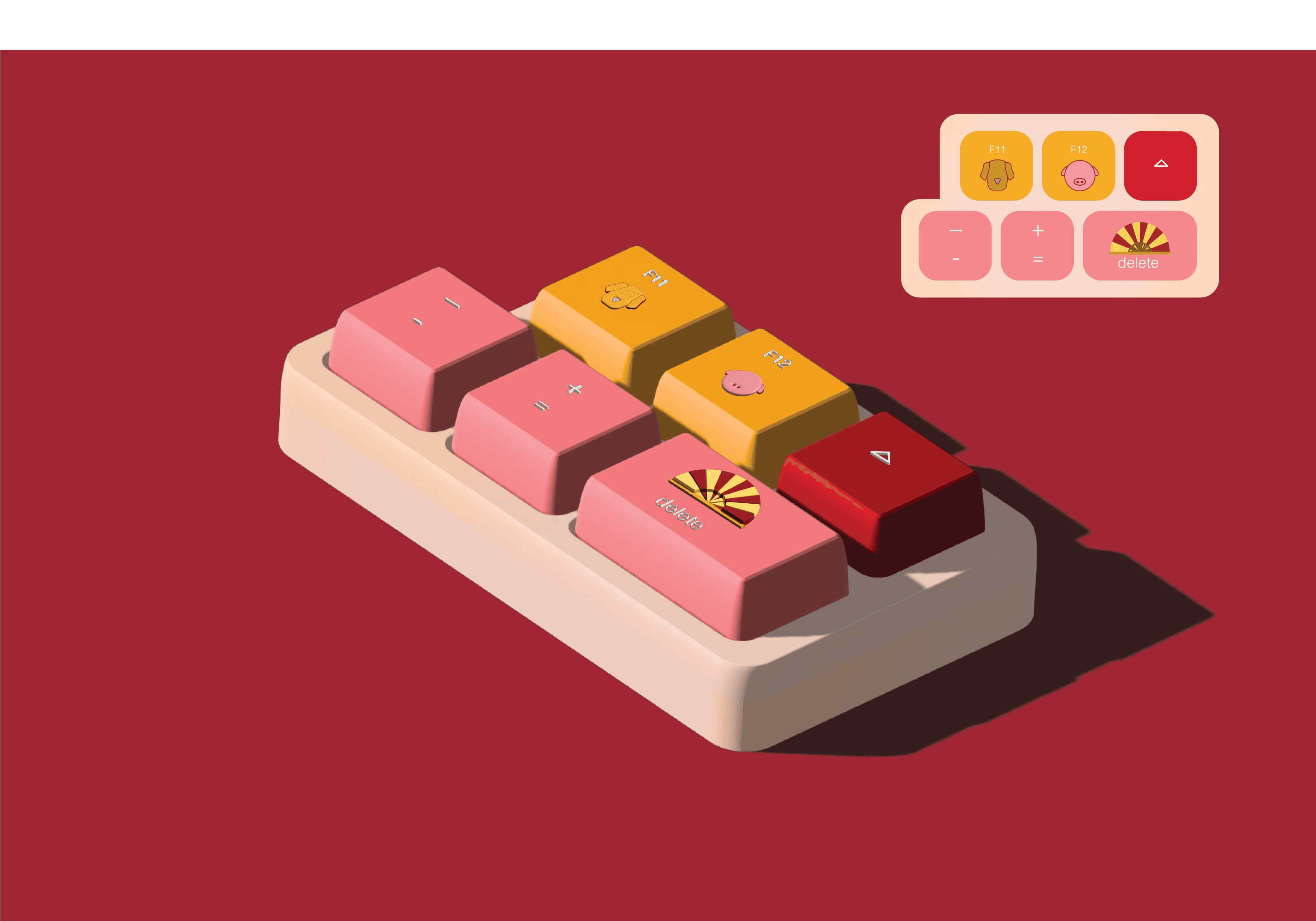 For the final outcome, I created a 3D mockup of my Chinese New Year-themed keyboard design using Illustrator’s 3D tools. This mockup showcases the overall layout, traditional colour scheme, and simplified icons in a realistic perspective, giving a clear visualisation of how the keyboard would look in real life. The 3D presentation enhances the design by highlighting its depth, proportions, and detailed elements, making it easier to communicate the concept effectively.