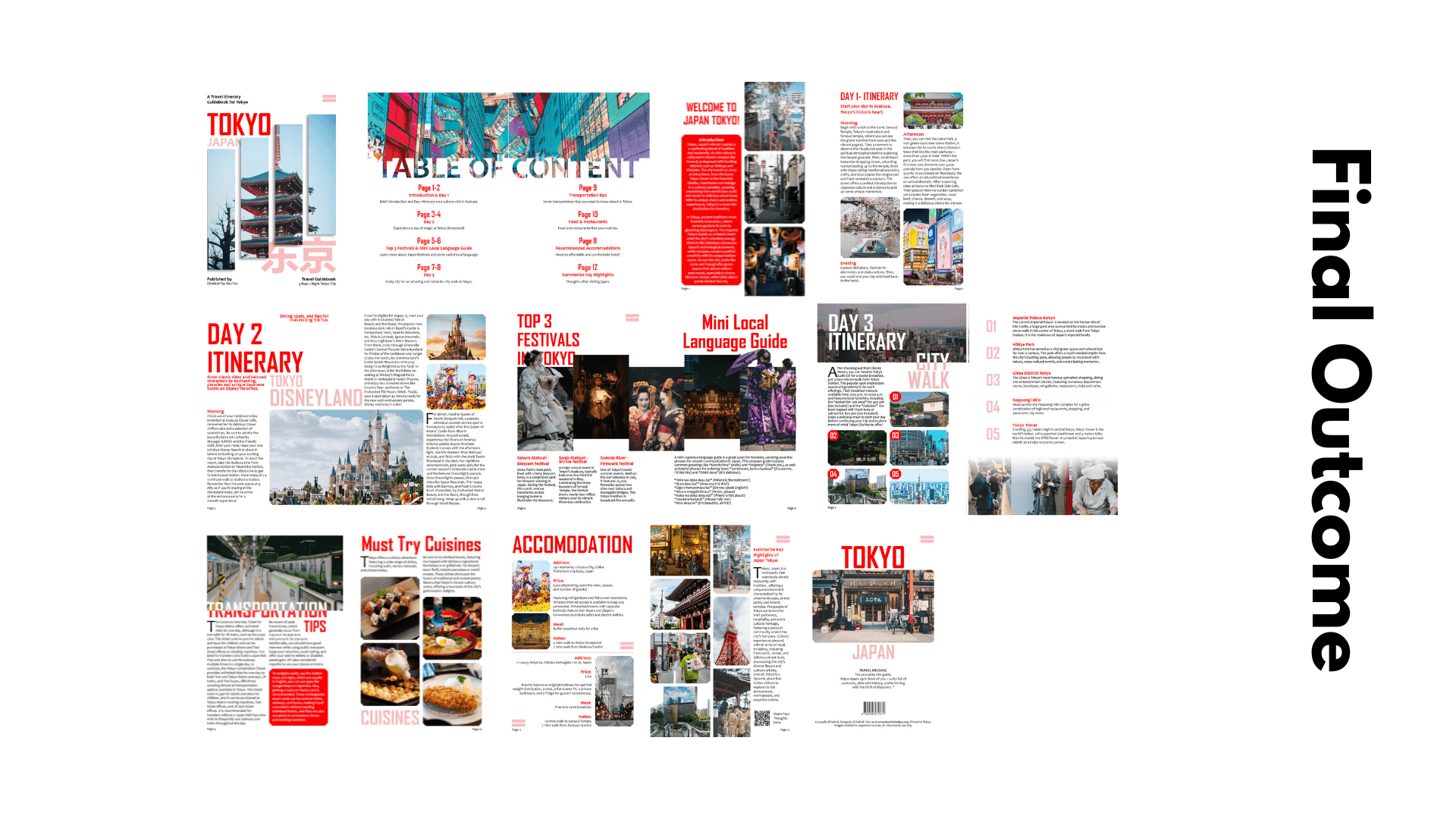 The final guidebook effectively presents Tokyo’s highlights in a concise, visually appealing format, helping visitors plan their trip with ease. It delivers clear information, cultural insights, and practical tips, creating an engaging and user-friendly travel resource.